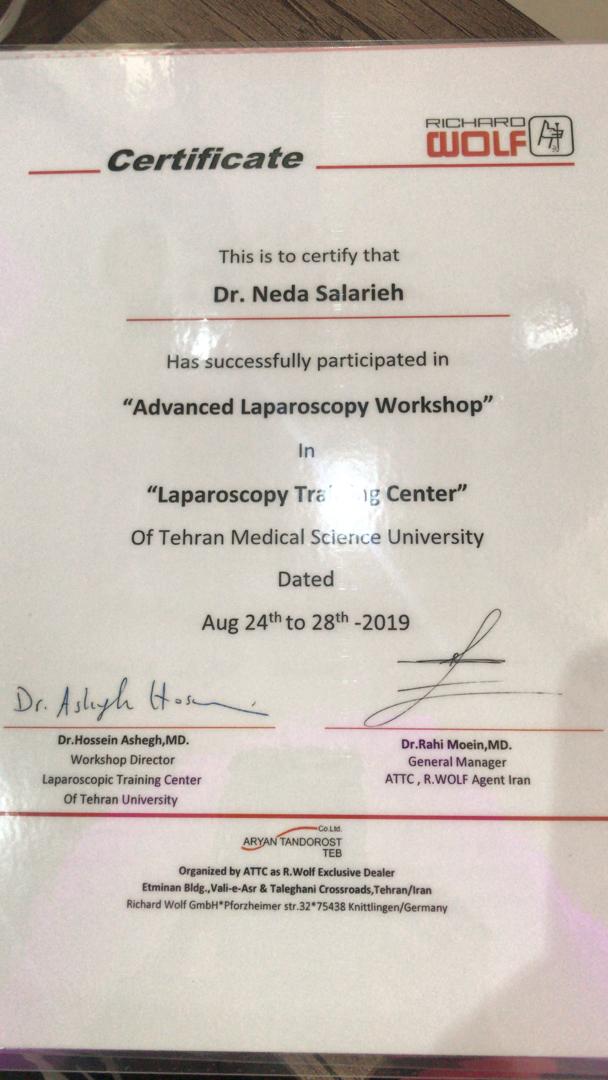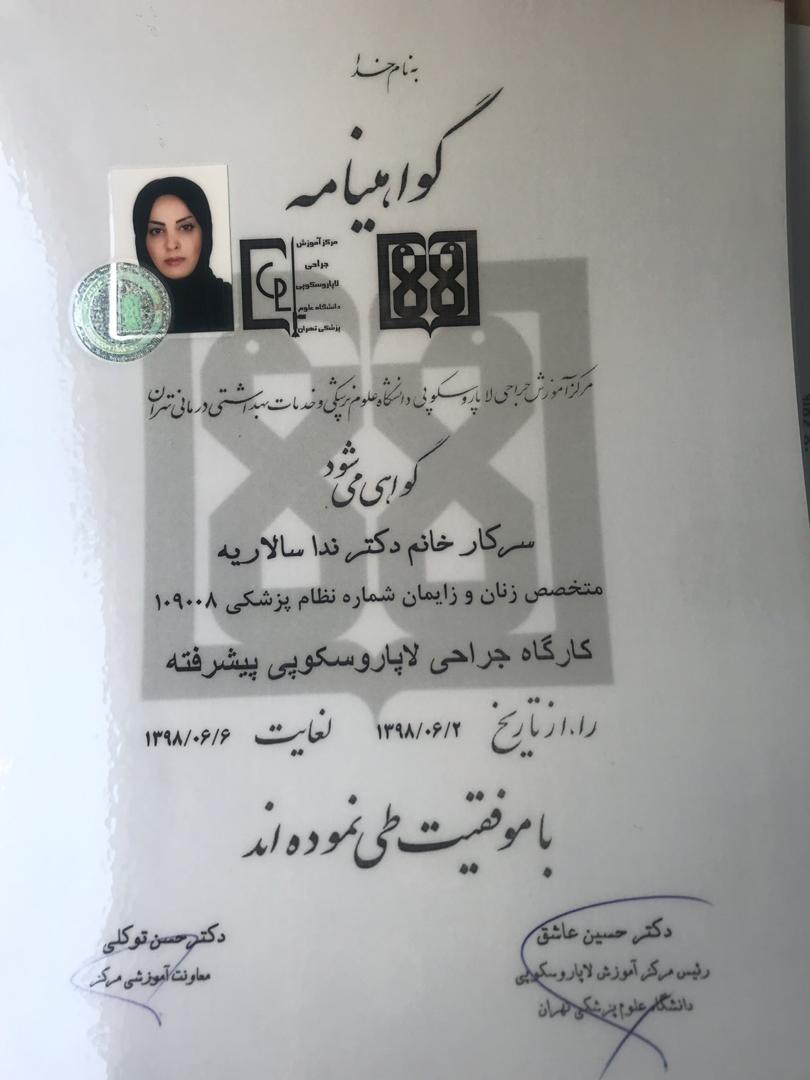 دارای گواهینامه تخصصی سونوگرافی ترانس واژینال و ترانس ابدومینال